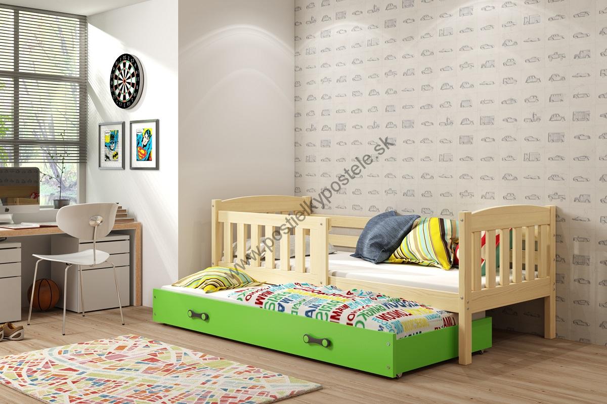 - Posteľ s prístelkou KUBO 2 - 200x90cm Borovica - Zelený