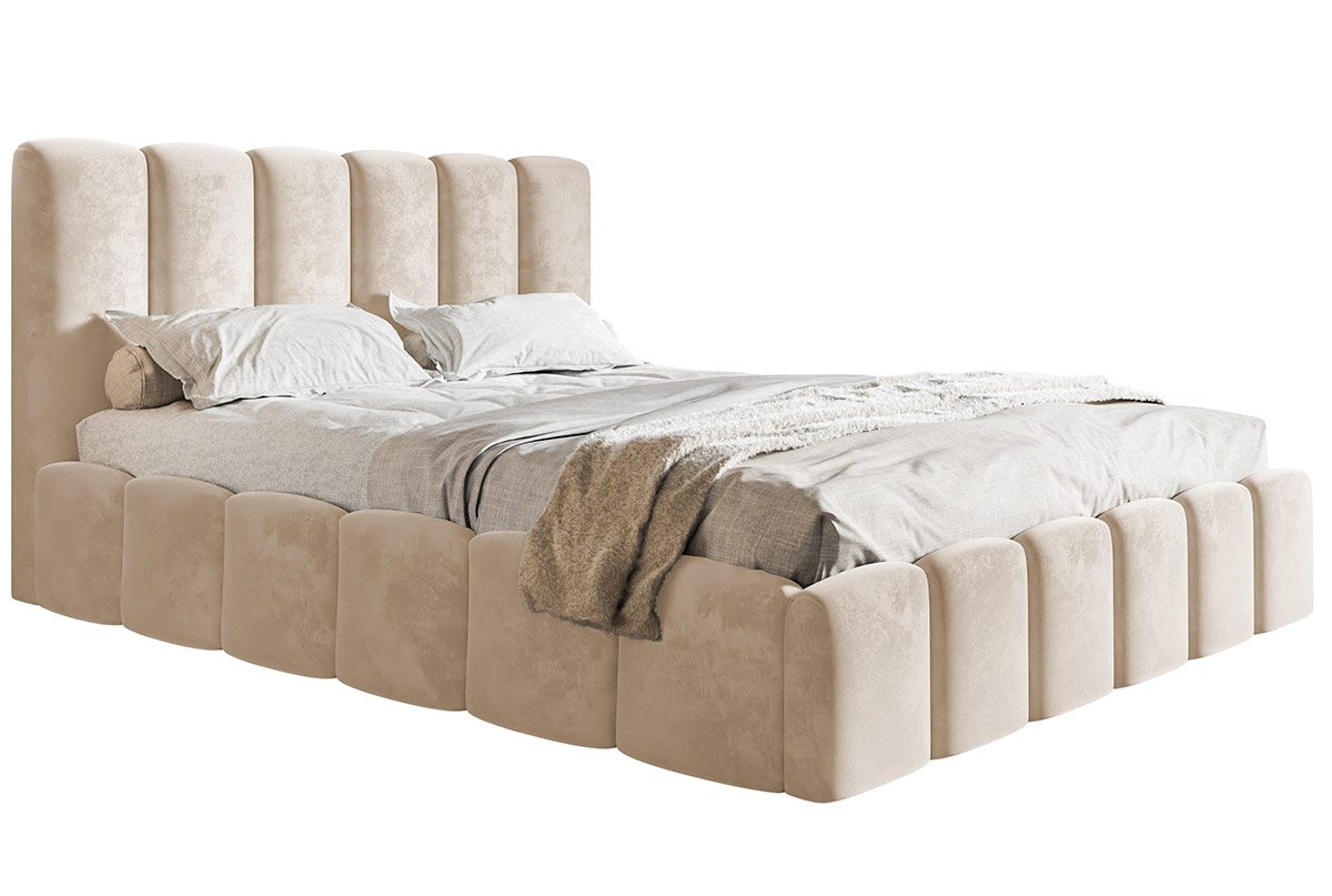 Čalúnená manželská posteľ s úložným priestorom SLIM 11 - béžová zamat | 160×200